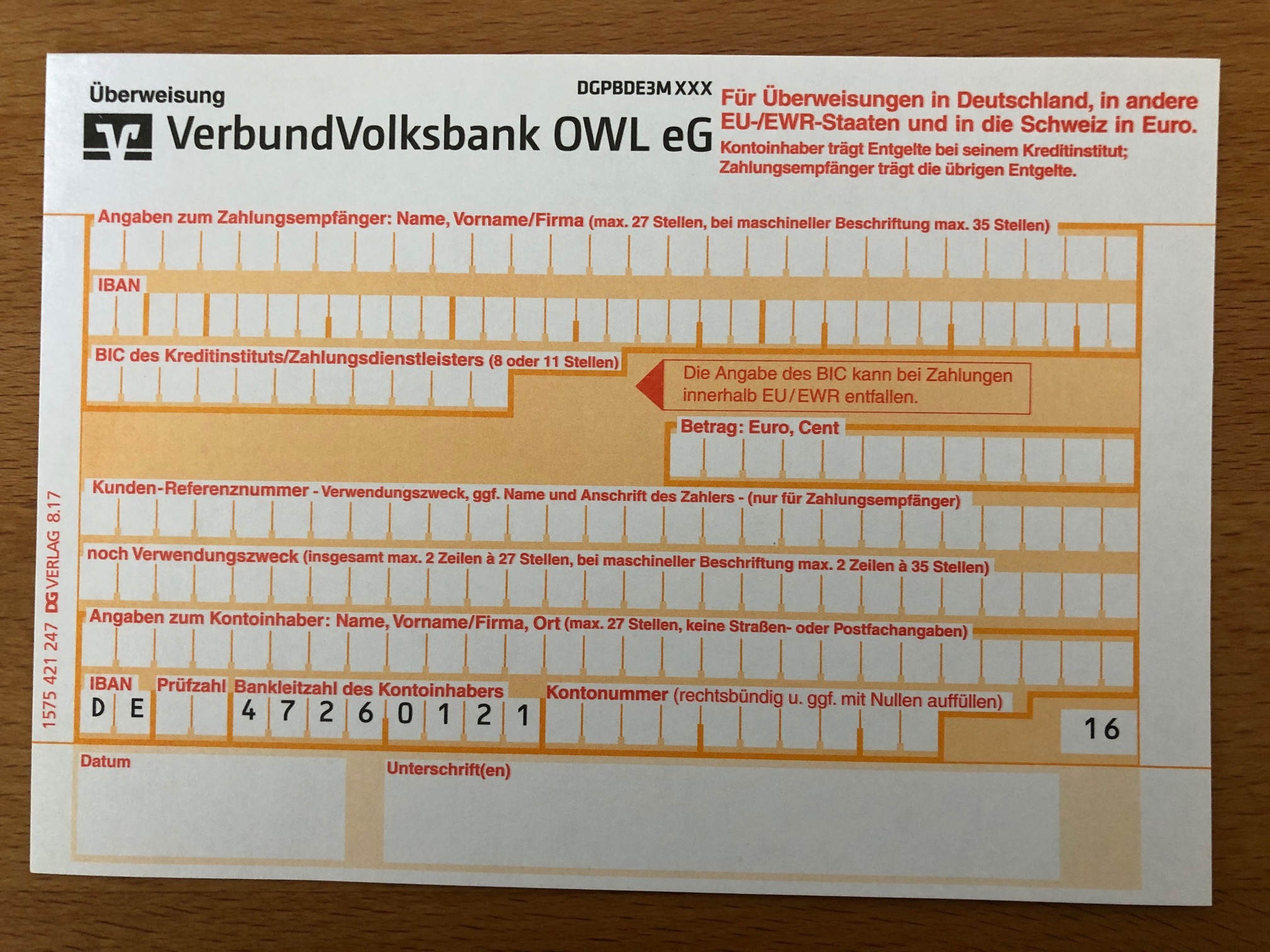 Das Konto bei der KD-Bank lautet: